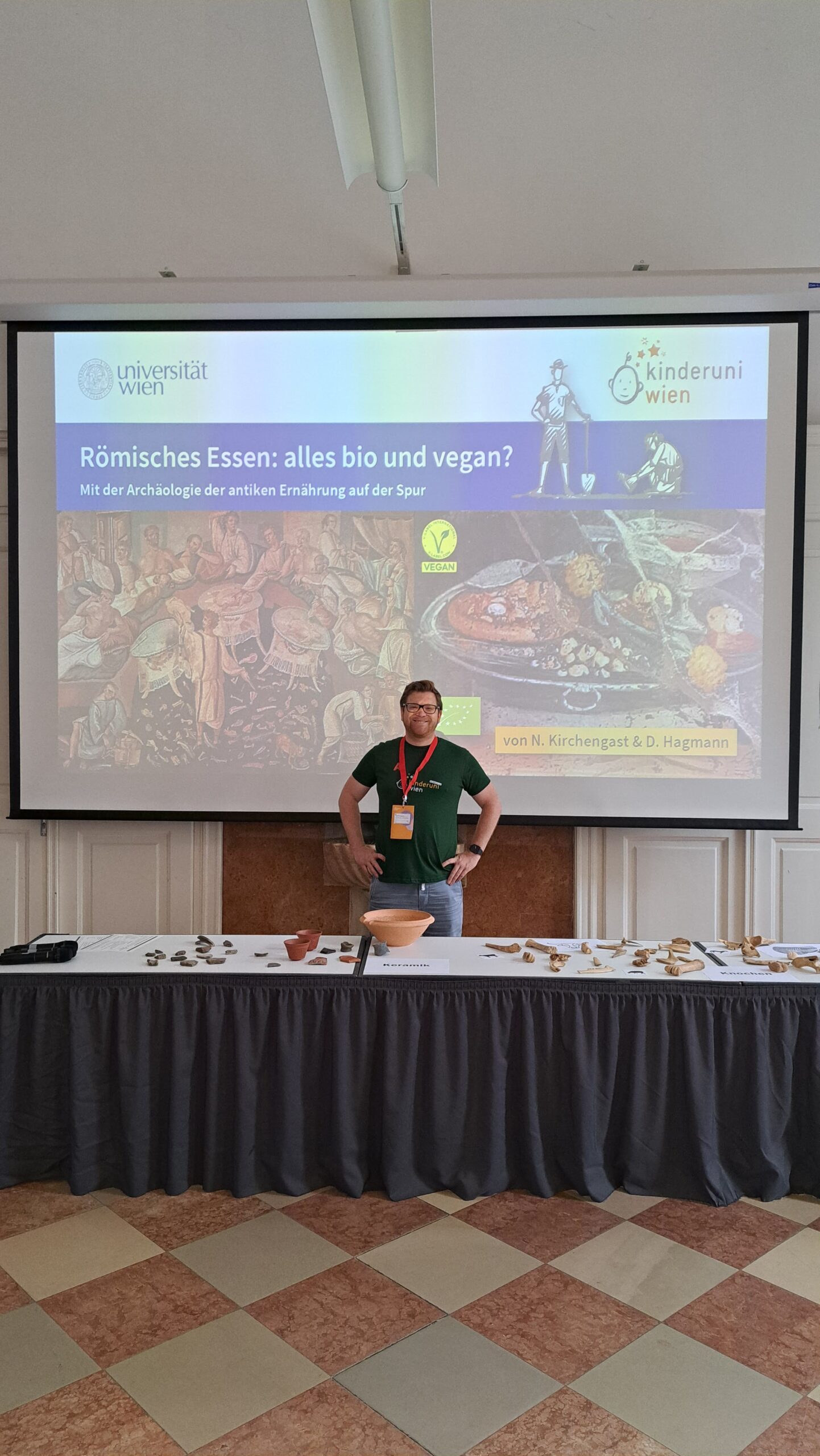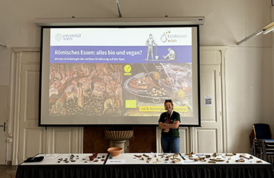 In this blog post, we, Dominik and Nisa, reflect on our Kinderuni session „Römisches Essen: alles bio und vegan? Mit der Archäologie der antiken Ernährung auf der Spur“ (Roman Food: All Organic and Vegan? Tracing Ancient Diet with Archaeology). On Monday, July 8th, we had the pleasure of diving into the world of Roman cuisine with a group of curious young researchers aged 7 to 12. This session was part of the wider Kinderuni initiative, which also includes a virtual session on ancient diets available online since 2020: „Parrots, Fish Sauce, and Dogs“ (https://kinderuni.online/kurs/papageien-fischsauce-und-hunde/).