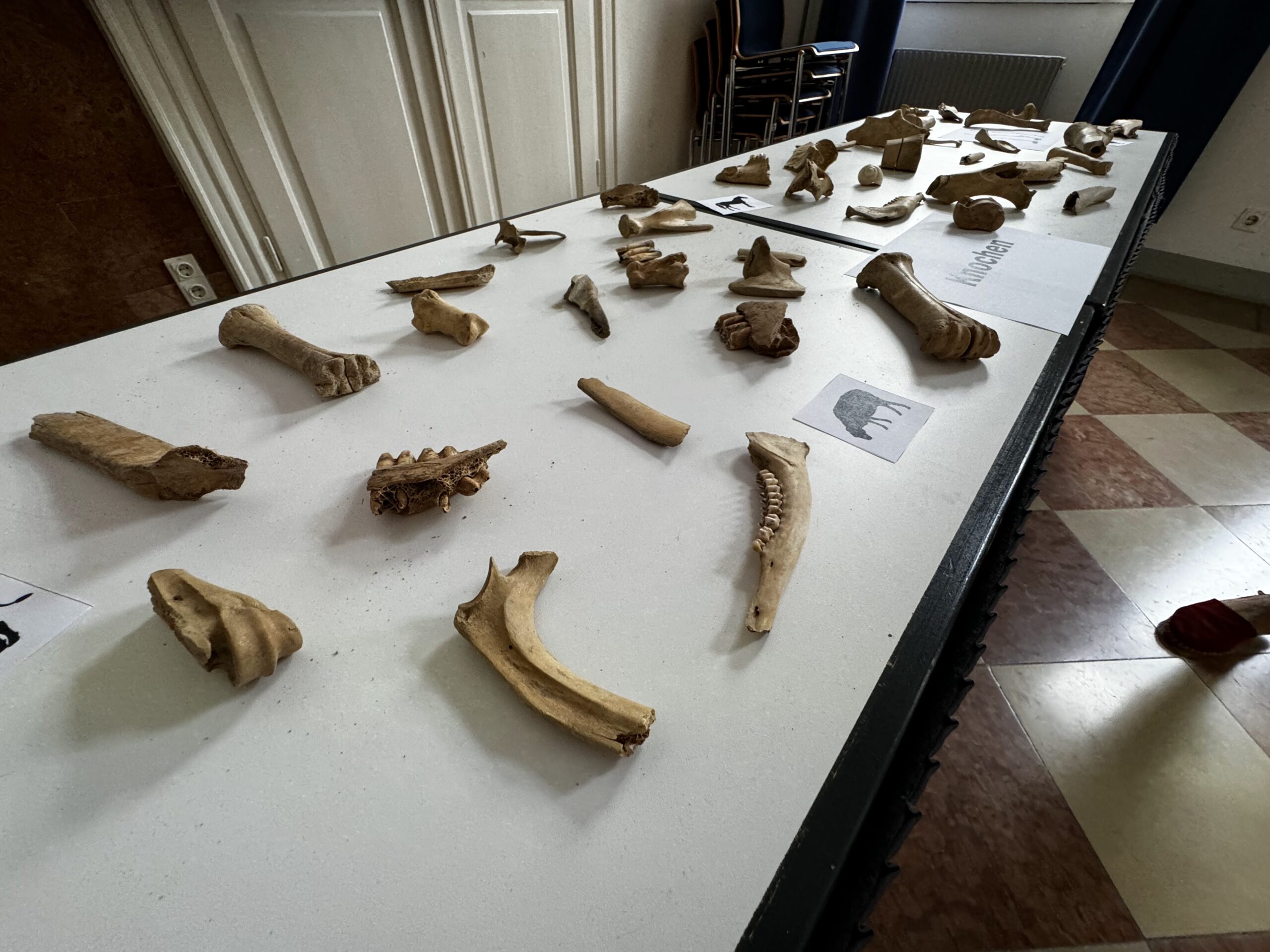 - Hands-On part: The (hopefully) future archaeologists had the opportunity to look at archaeological finds and pick up some bones and pottery for the first time.