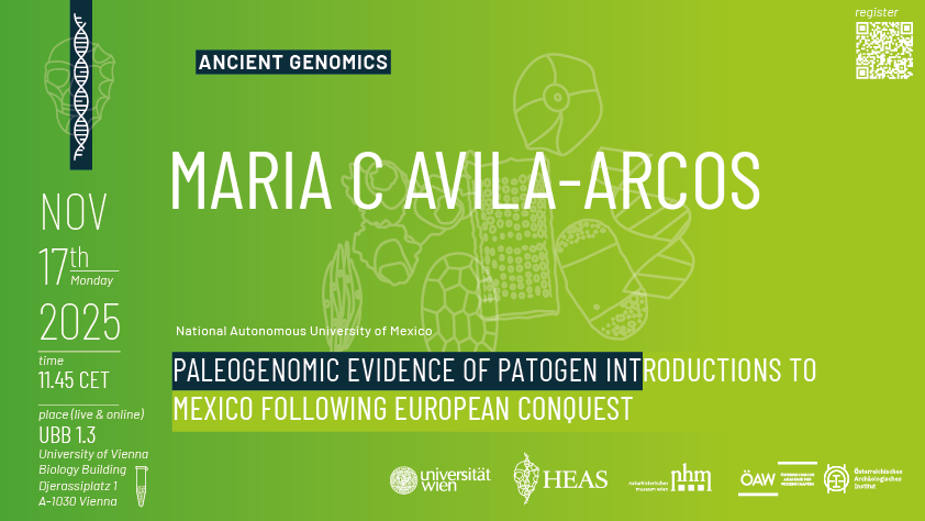 SR 1.3 Djerassiplatz 1, Vienna, AustriaAs part of the HEAS Seminar Series in Ancient Genomics Maria C Avila-Arcos from National Autonomous University of Mexico will give a talk on Paleogenomic evidence of patogen introductions to Mexico following European Conquest on the 17th November at 11:45 […]